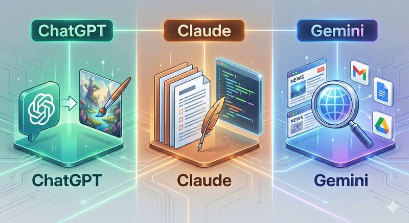 OpenAIのChatGPT、AnthropicのClaude、GoogleのGemini。3つの代表的なAIサービスの長所を比較し、状況別におすすめを紹介します。